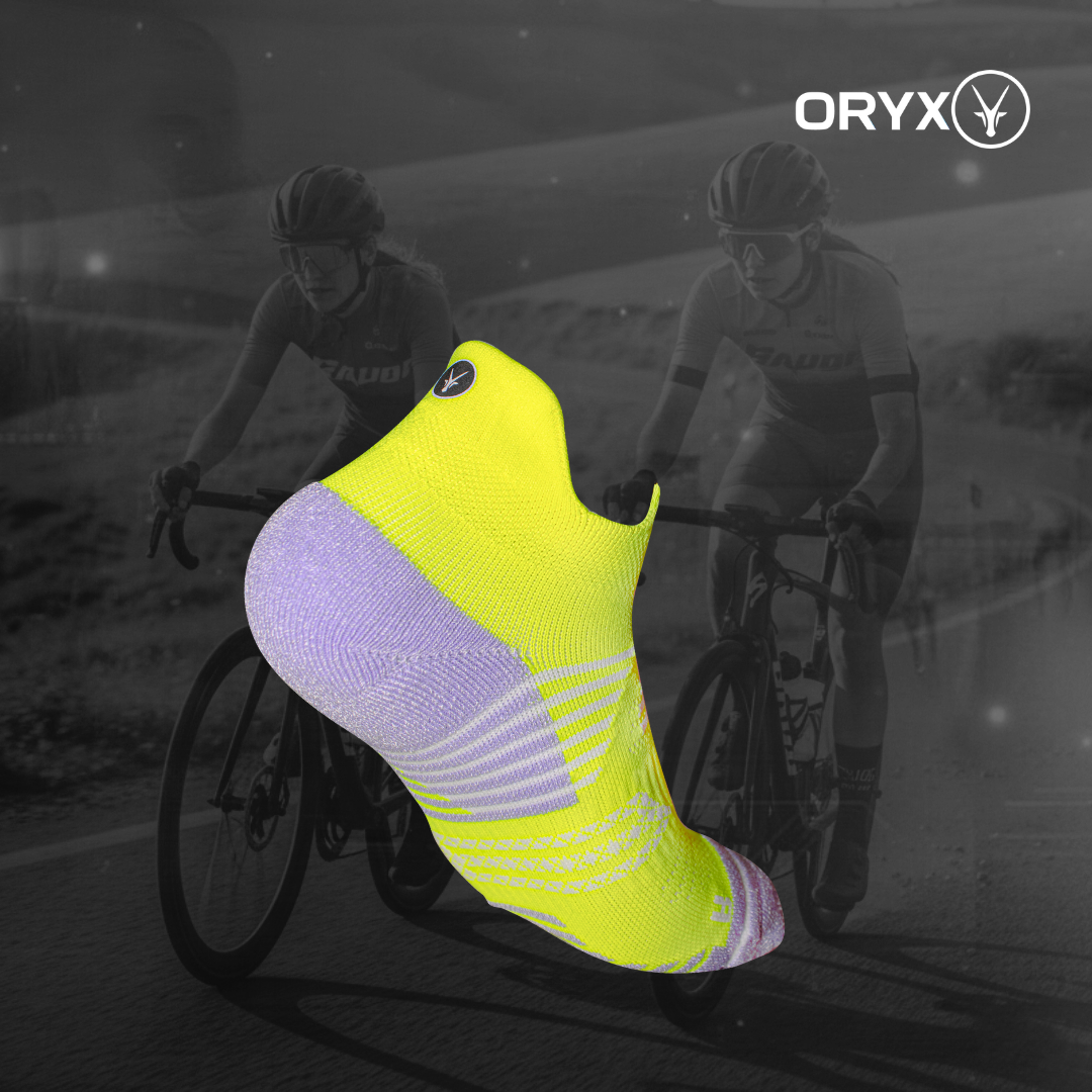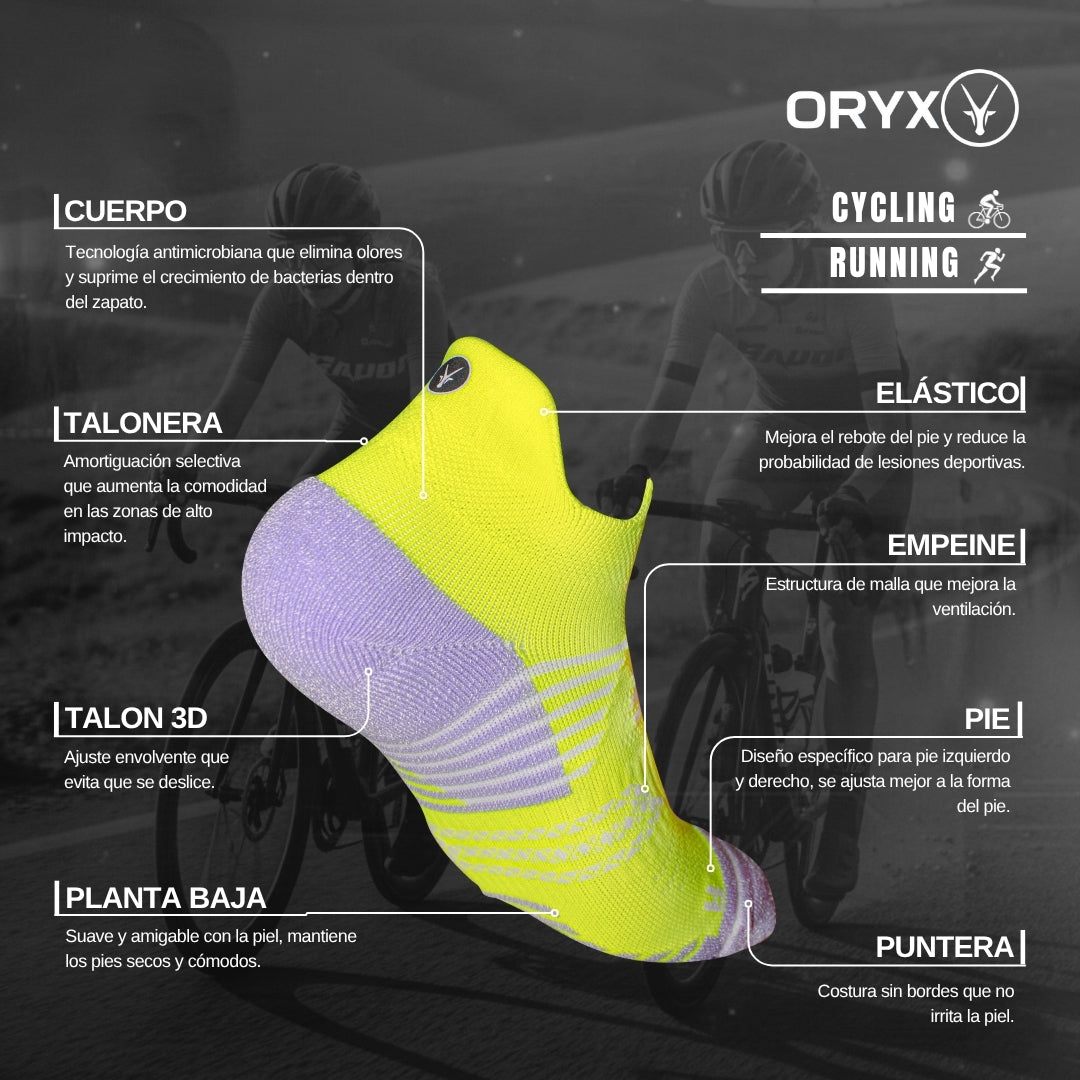 Ligereza y ventilación para recorridos largos. Ajuste aerodinámico sin deslizamientos, malla transpirable y protección de impacto en el talón.